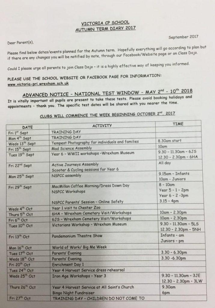 The termly diary will be posted by Friday – we have so many things planned already. We will not be sending out a paper copy this year but some ‘hard’ copies will be available in both offices should you want one. We will post the Autumn Term diary on the school website and screenshots will be uploaded on to Class Dojo.