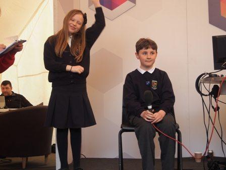 We had a great time in Queen’s Square this morning, taking part in the BBC Wales Head to Head radio quiz hosted by Wynne Evans (the Go Compare man). Rufus and Scarlett were brilliant as our participants. Our year 6 pupils were also brilliant supporters! Da iawn. St. Giles School just pipped us by one point (a controversial outcome!) The Tenovus Choir also performed and Wynne Evans was interviewing a 93 year old gentleman who had just started a new job!