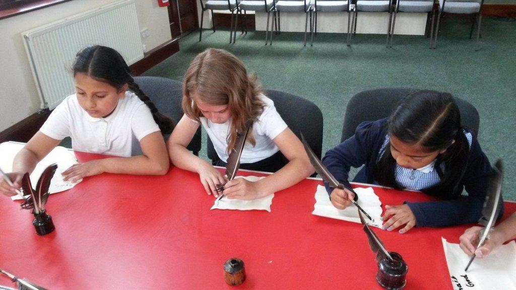 Last week, Year 4 visited Bradley Road Church to learn more about the Tudors. We write with quill pens, looked at Bibles that were up to 200 years old, dressed up as Tudor children and learned that William Tyndale translated the Bible into English for us all. We had to hide our Bibles from the Tudor guards so we didn’t get our heads chopped off!